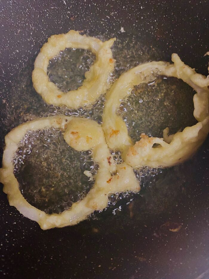 新玉ねぎは甘味があって美味しいので、オニオンリングも美味しく仕上がりました。
