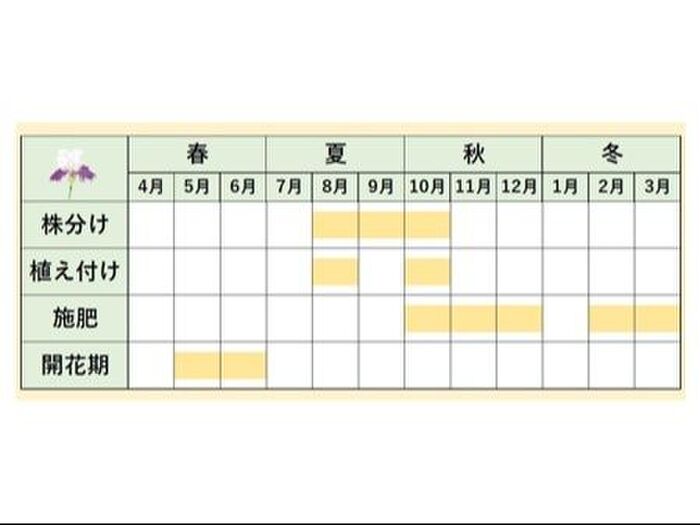 ジャーマンアイリスは株分けで増やすことができます。植える替える時にいっしょに行いましょう。適期は8月~10月頃です。