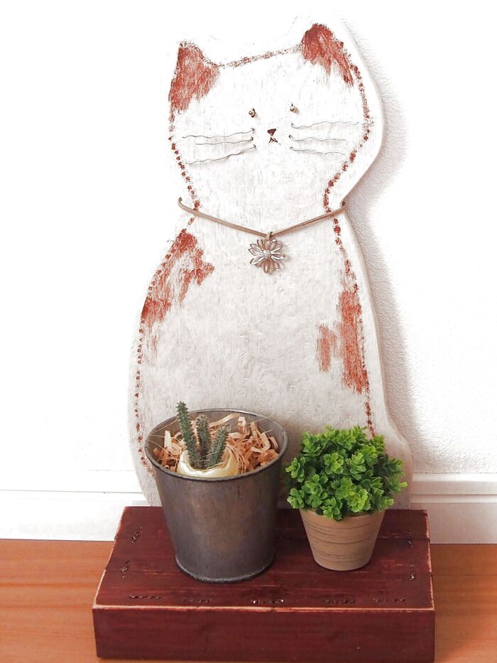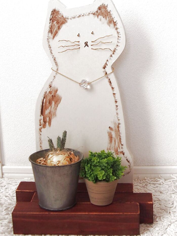 お髭をワイヤーで、首輪にビーズを通して……可愛くなりました~