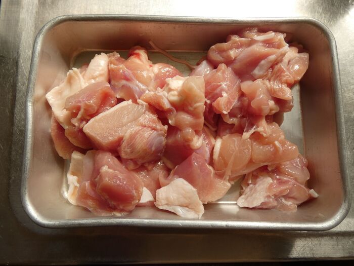 鶏もも肉は一口大に切ります。