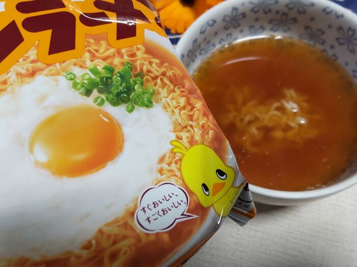 卵を溶かずにそのまま入れるところは、日本のチキンラーメンのようですね。チキンラーメンも卵を入れるととっても美味しいので、こちらのココ麺も美味しそうです。