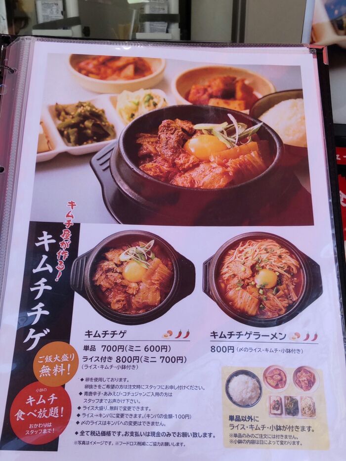 セルフサービスで5種類のキムチが用意されており、白菜キムチと大根キムチは食べ放題!有名な山田商店のキムチも付いてくるので、お得感がありますね。