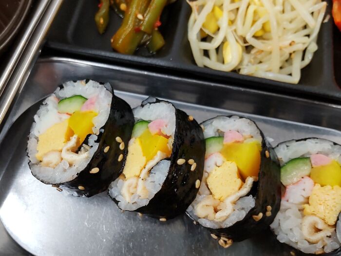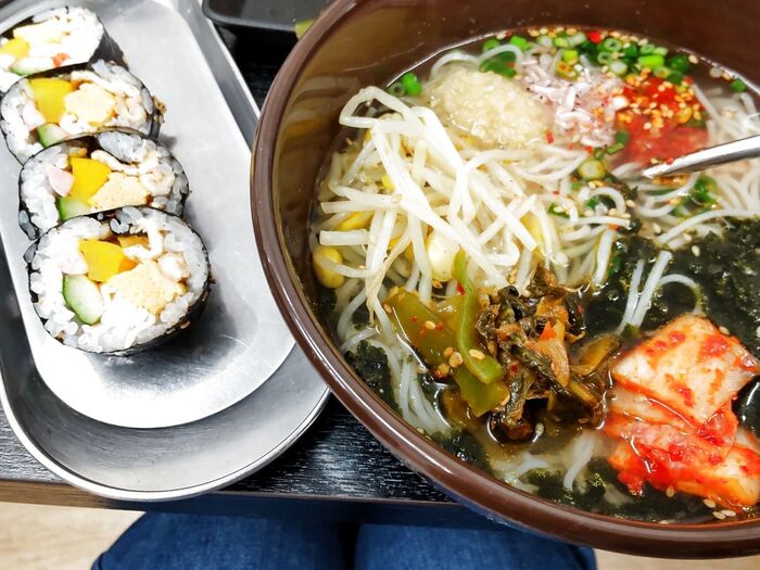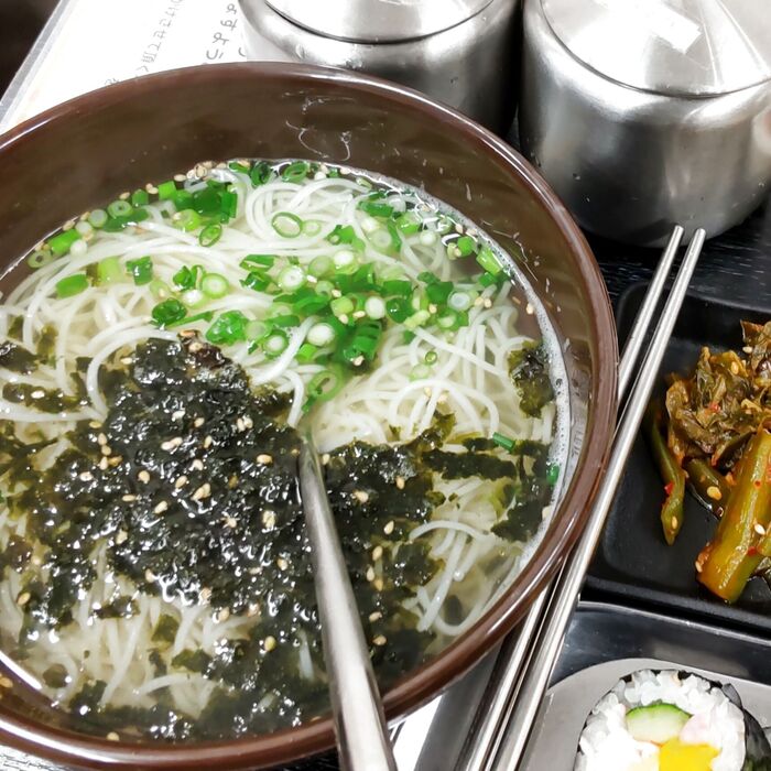 韓国風にゅう麺にキンパもついているお品を選んだので、キンパと共に味わいました!