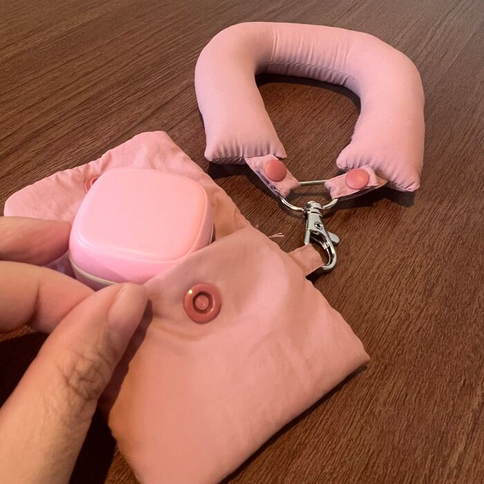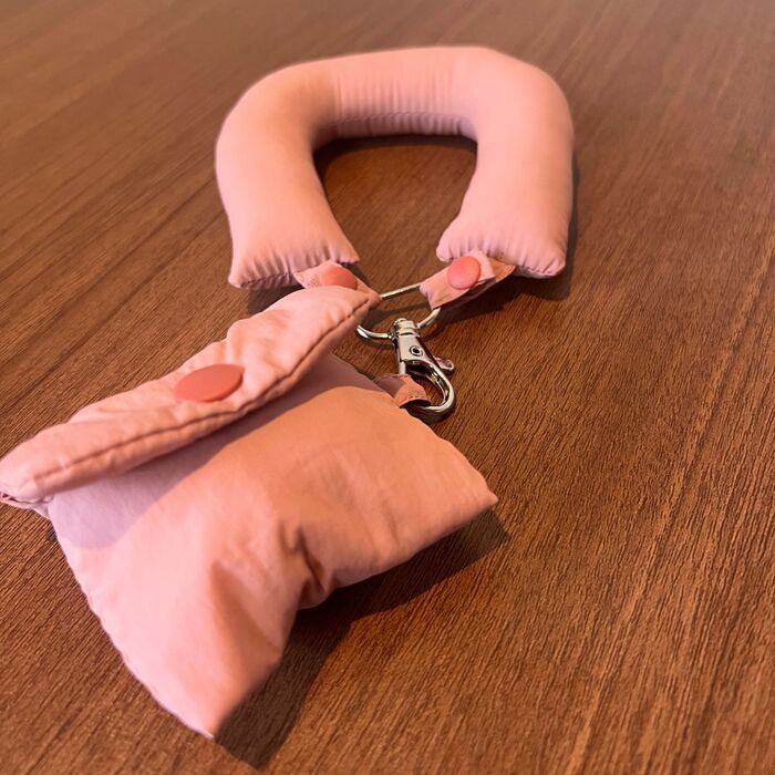 というのも、このケースはキーホルダーだけでなく、ポーチやストラップ部分がスナップで止まっているので、色んなところにつけられます!