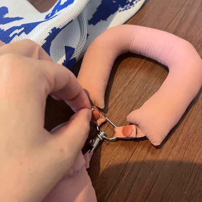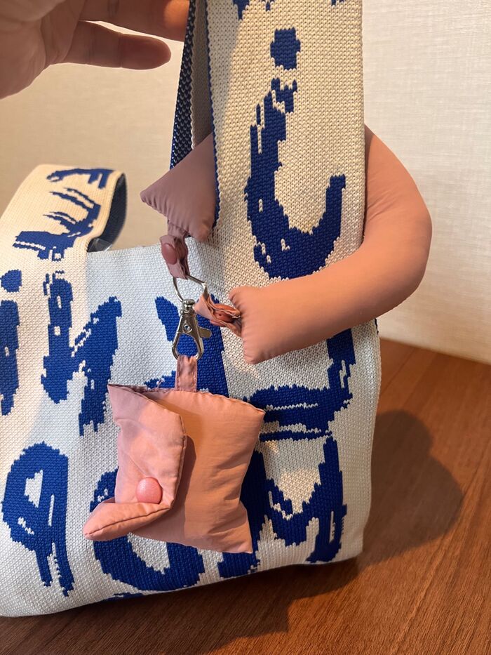 ストラップ部分のスナップを外して、バッグの手提げにつけてみました!