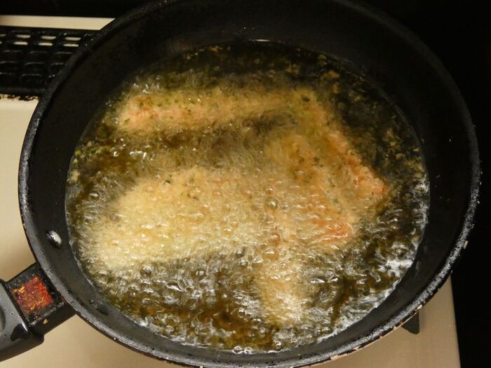 180度くらいの油で揚げ、きつね色になったら完成。