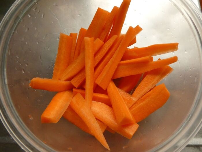 人参を電子レンジ加熱しておくと、火の通りが早いです。