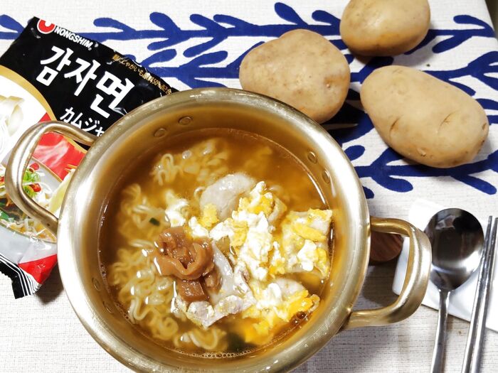 韓国のインスタントラーメンは、麺とスープ、かやくを同時に沸騰した湯に入れて煮込むだけのものが多く、本当に簡単なんです!ありがたいですね、手軽に美味しい麺が楽しめるなんて!