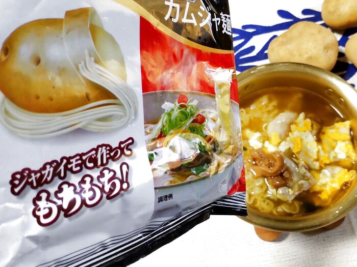 じゃがいもを練り込んだ麺は柔らかくてモチモチしていて、独特な食感があり、かなり美味しいです!リピ決定の品です。