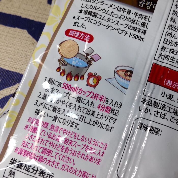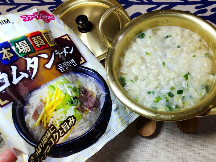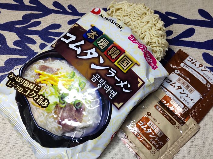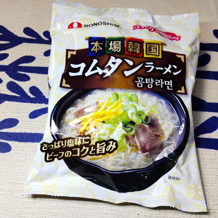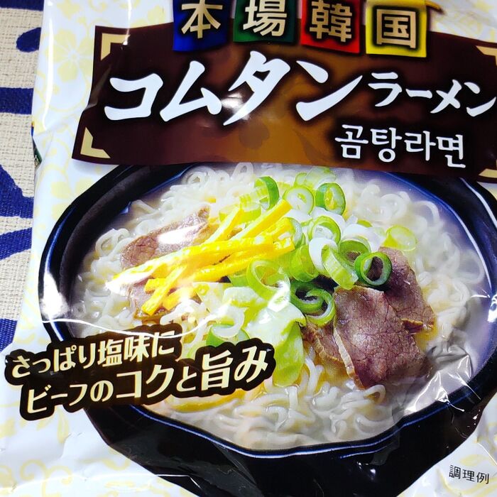 作り方の説明には、牛骨と牛肉を加えてあると記載されていますね。こちらの「本場韓国コムタンラーメン」は、牛肉、牛骨を煮込んだ塩スープです。