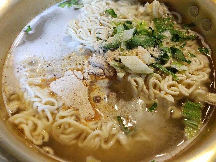 韓国のインスタントラーメンは、かやくやスープを沸騰した湯と麺と一緒に入れて煮込むので、とっても簡単なんです。