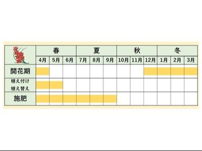元肥として洋ラン用の肥料を施し、生育期の4月から9月には、追肥として骨粉入りの固形油かすなどを置いておくと効果的です。それと同時に、液体肥料を1~2週間に1回施肥し、栄養管理することで美しい花を咲かせます。
