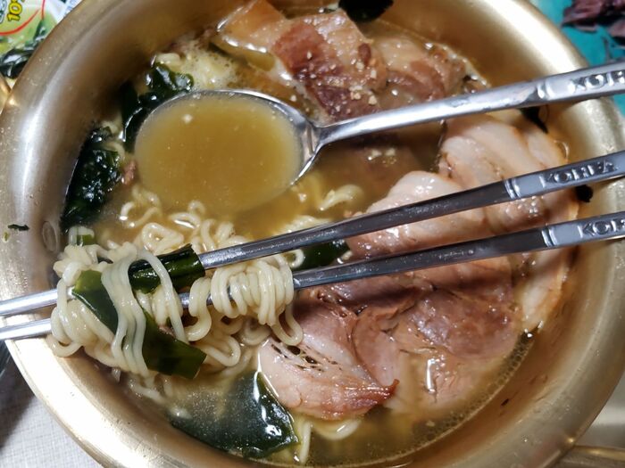 韓国ラーメン専用の鍋で作れば、お湯が沸騰するのも超早いし、思い立ったらすぐに食べられるのがいいですね!長期保存もできるので、買い置きできますしね!