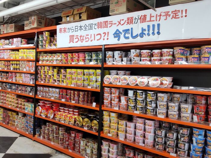 日韓の食材を取り扱っていて、韓国ラーメンが豊富に揃う大規模スーパーマーケットにて入手したお品です(撮影許可を頂いています)。