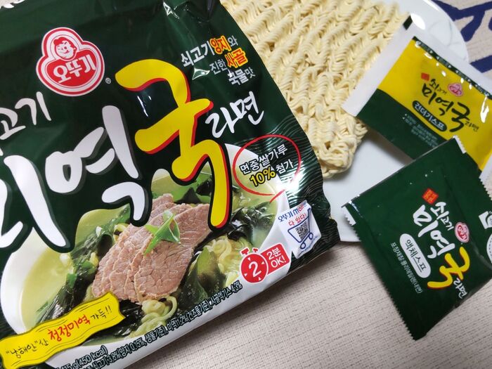 パッケージもワカメ色!はじめて韓国ラーメンを試す人にも非常に分かりやすいパッケージとネーミングですね。分かりやすいのはありがたいですねー!