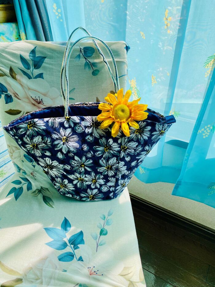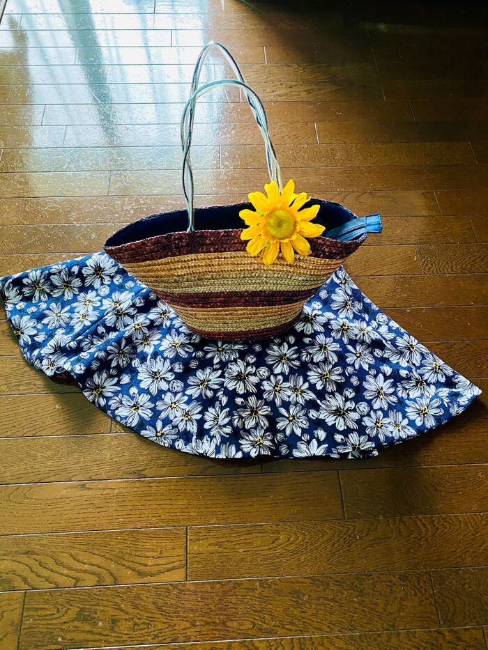 色褪せたかごバッグとスカートを使って簡単に夏用のバッグを作りますよ。