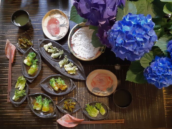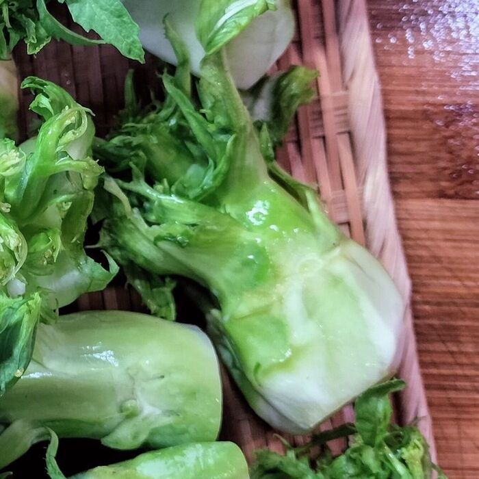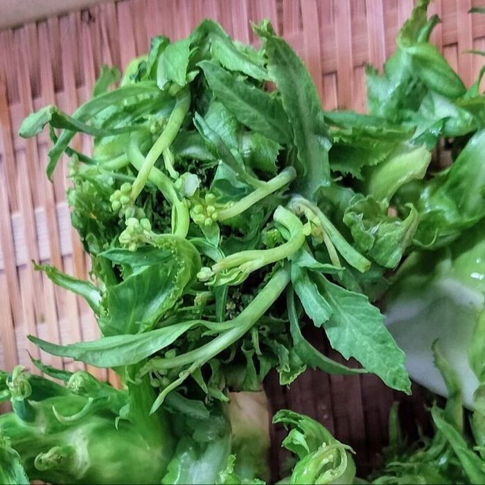 春蕾を1〜2分程塩ゆでして、鰹節・醤油をかける