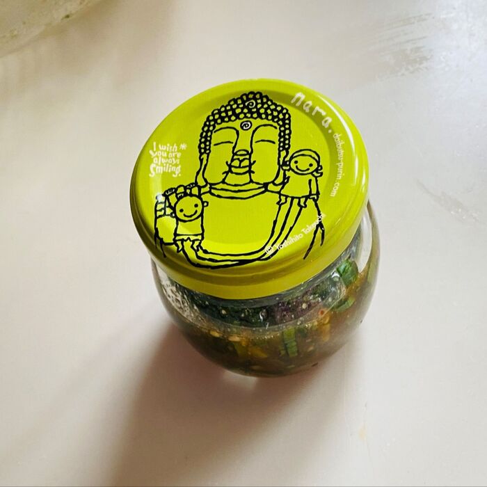 これをお裾分けにしたら、素敵な瓶!と言われ、大仏様がデザインされた「甘辛万能ニラだれ」が商品化されたら良いのになーと思いました。