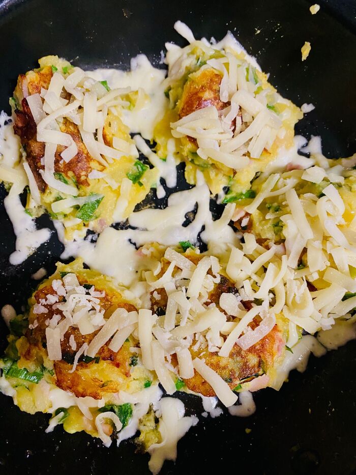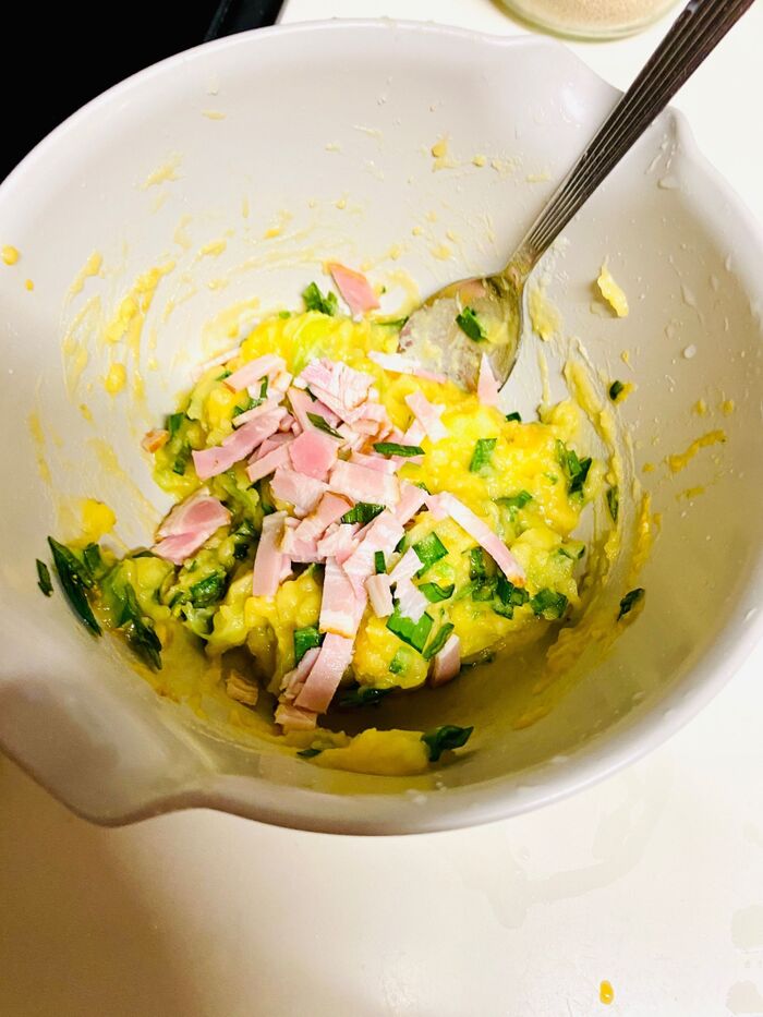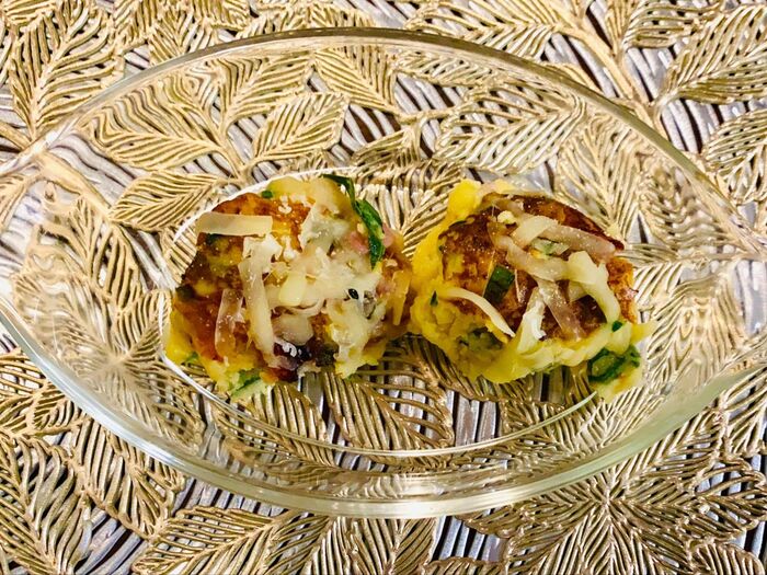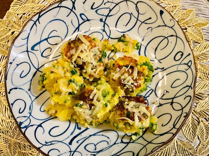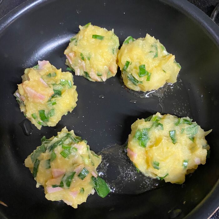マッシュしたじゃがいもを丸める時に水っぽいなと思っらた、片栗粉を入れて調整して下さい。