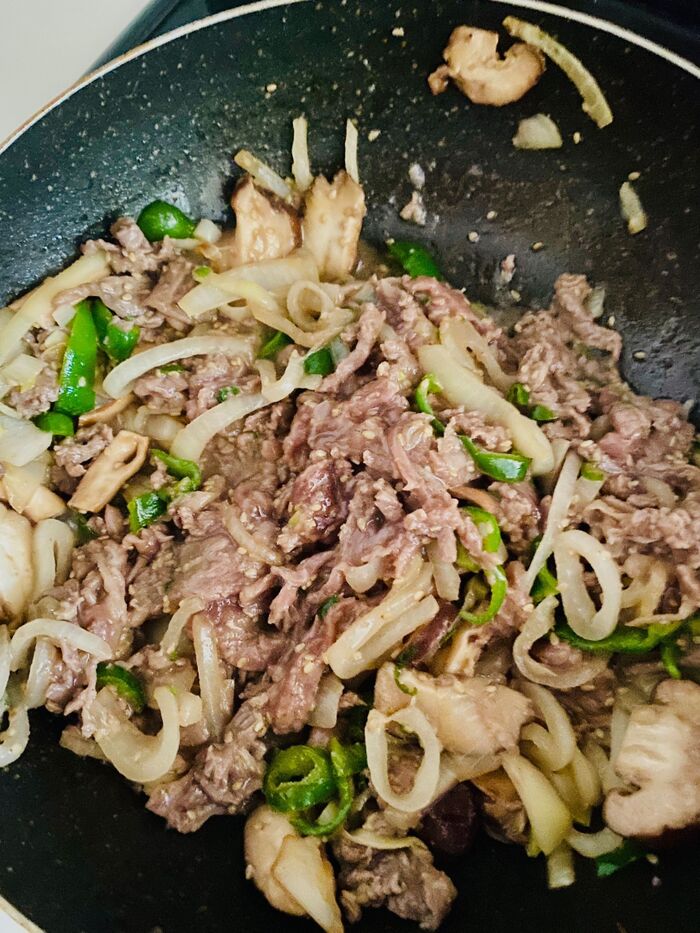 茶碗にご飯を盛り付け、プルコギをかければ「プルコギ丼」の完成です。