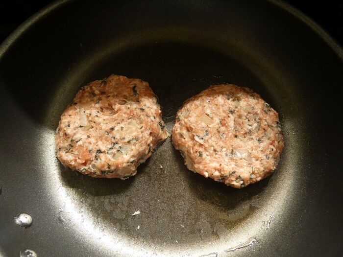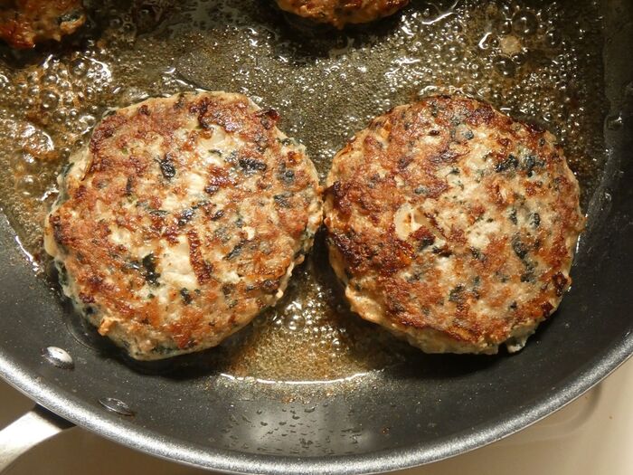 ひっくり返してフタをして5分焼き、竹串をさして透明な肉汁が出てきたら完成。