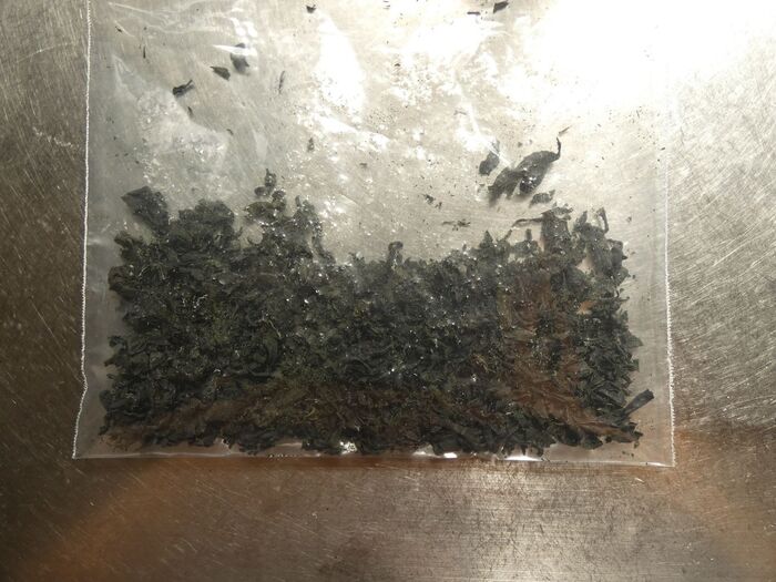 乾燥ワカメは厚手の袋に入れて、叩いて細かくします。