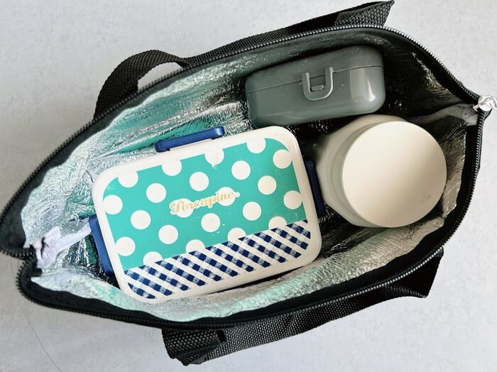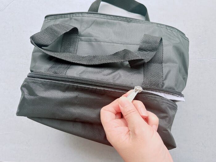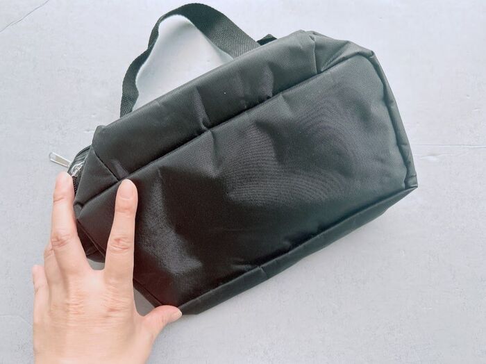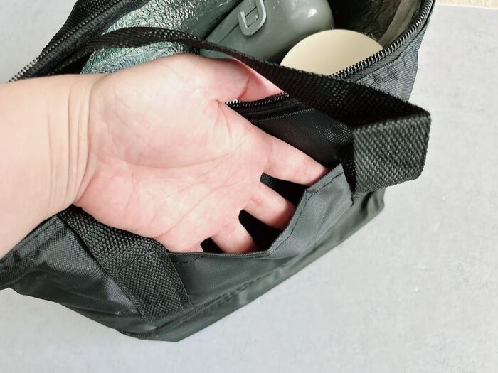 ふりかけとか、保冷剤とか、いろんな用途に使えそうだけど、私はここにゴミ袋とお手拭きを入れる予定です。