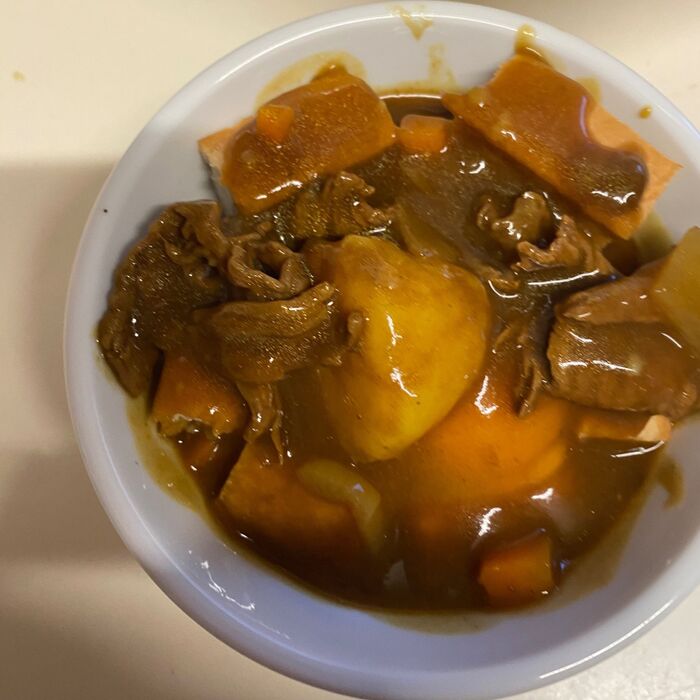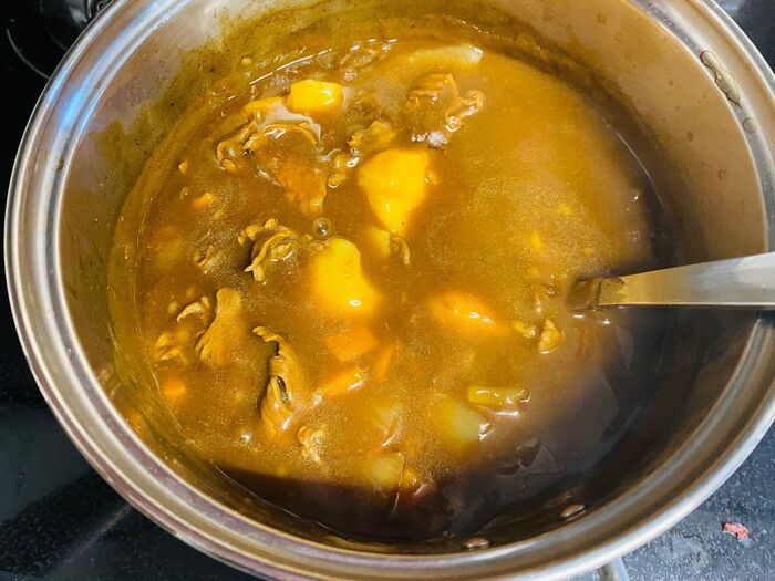 昨日の残ったカレーを軽く温めます。