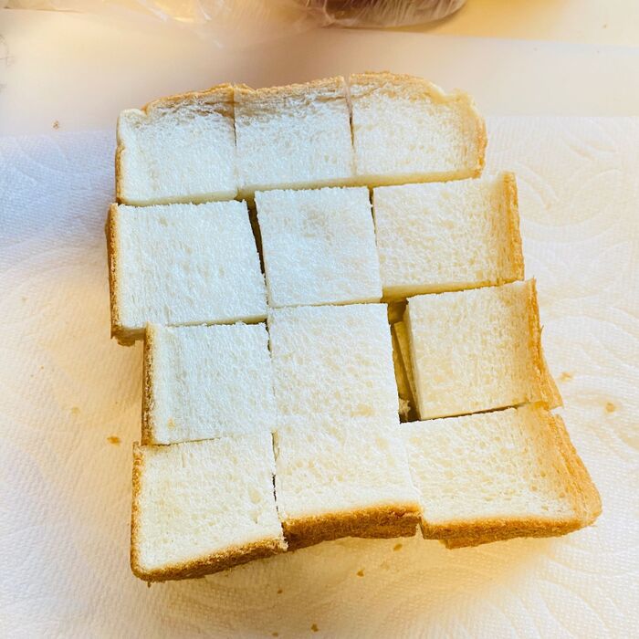 食パンを大きめの角切りにします。