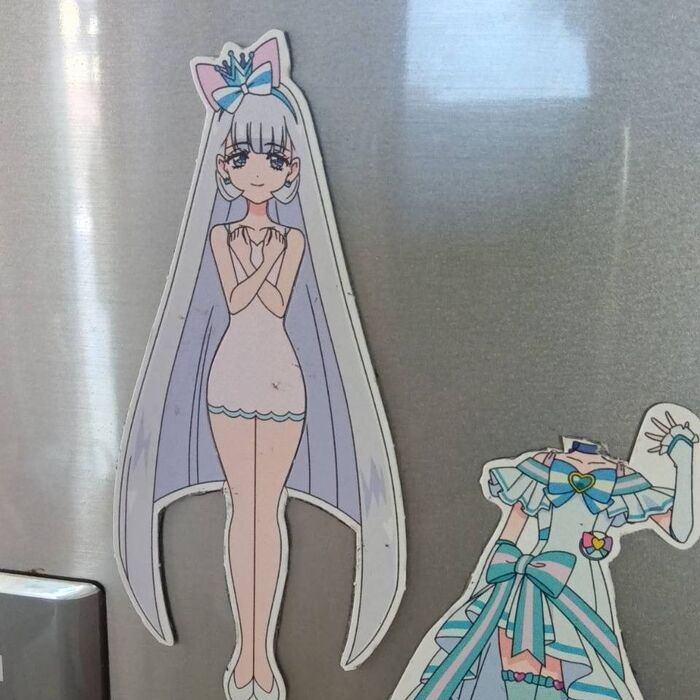 人形に洋服をくっつけるとマグネットが反発してずれる場合もあります。