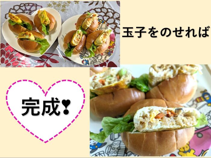 最後に切り干し大根入り卵焼きをいれて、お好みでマヨネーズをトッピングすれば…