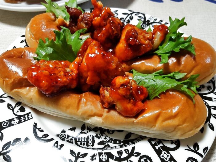 我が家自慢のおかずのから揚げをヤムニョムチキンにしたものは、パンに合う絶品おかずです!