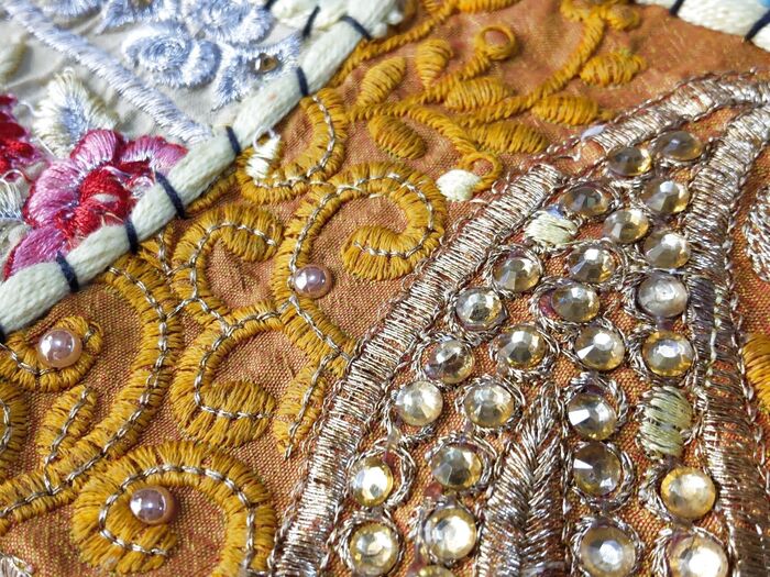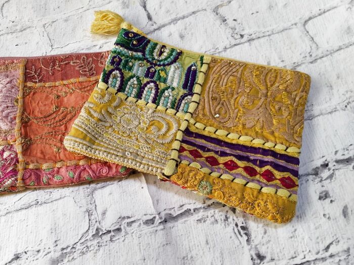 これらのアイテムには、インドの伝統的な刺繍やミラーパーツ、ビーズ、スパンコールなどが施され、鮮やかなデザインが特徴で、インドらしさのある、華やかさです!