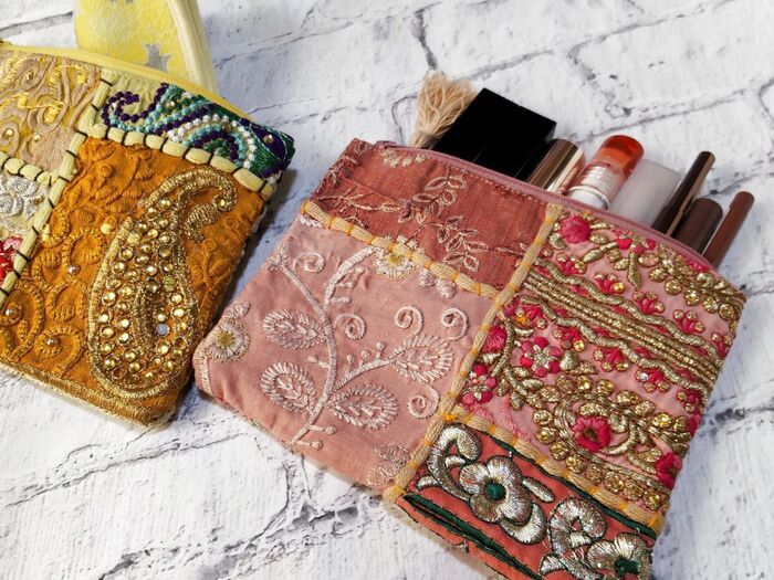 それぞれのアイテムは異なる生地が組み合わされており、世界に1つだけの個性的なものとなっているそうです。それぞれのポーチに異なる柄が施されているので、お気に入りのデザインを見つけるのも楽しみの一つです。