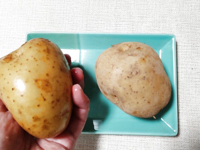 •電子レンジであらかじめ加熱しておくのがポイントです。じゃが芋の大きさにより加熱時間を調整してくださいね。加熱できたかどうかの目安は、加熱後そのまま美味しく食べられる柔らかさにしておきます。