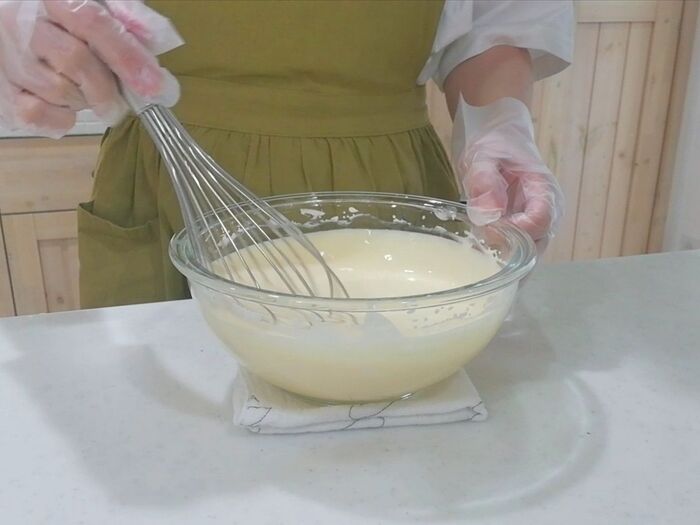 ※ゼラチンが固まっていたら600Wのレンジで10秒~20秒加熱し、完全に溶かしてから加えてください。