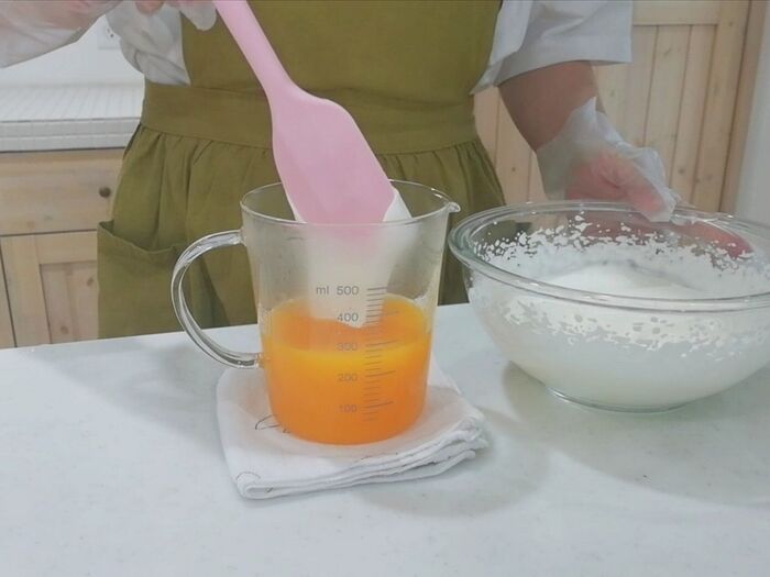 ジュース液に泡立てたホイップクリームを少量加え馴染むまで混ぜる。