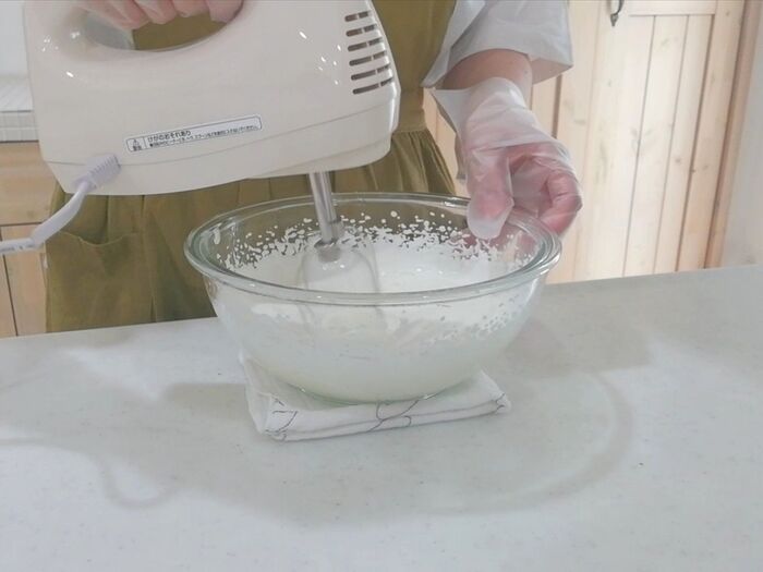 ※最初は低速で混ぜ、徐々に回転速度を上げることでクリームの飛び散り防止になります。