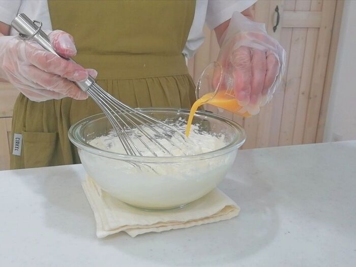 ・薄力粉とベーキングパウダーは合わせて泡立て器で混ぜ合わせておく。