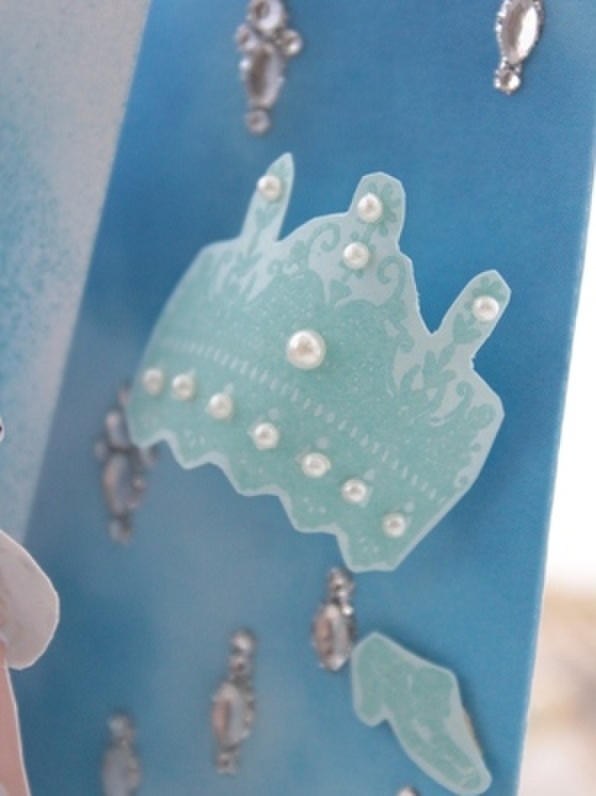 その台紙に、キラキラの立体パーツやティアラのスタンプにパールをつけたもの、