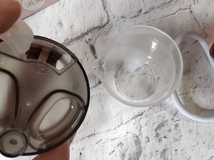 タンクに水を入れる際は、水を計るための注水カップも付属していますよ。これがあると、正確な量の水を入れることができて便利ですね。