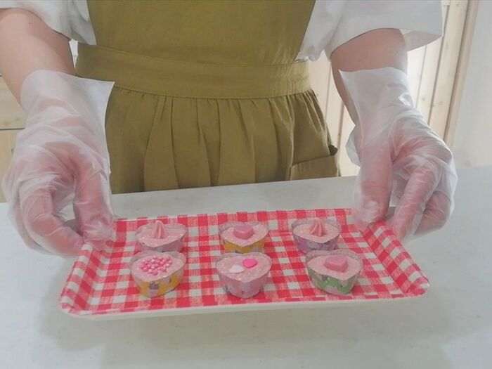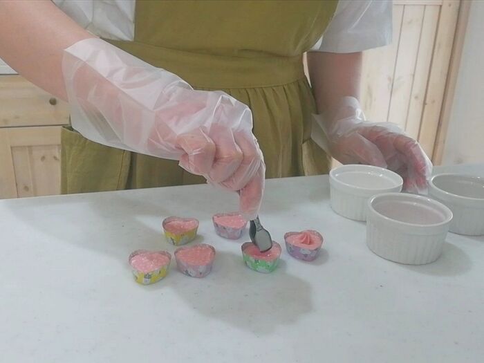 カップは“ダイソー”の「チョコアルミカップ ハート型」
