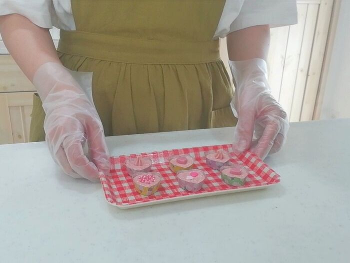 トッピングは“cotta×DAISO”の「スターチョコストロベリー」「ミニハートイチゴ」「トッピングmixピンク&チャームハート」