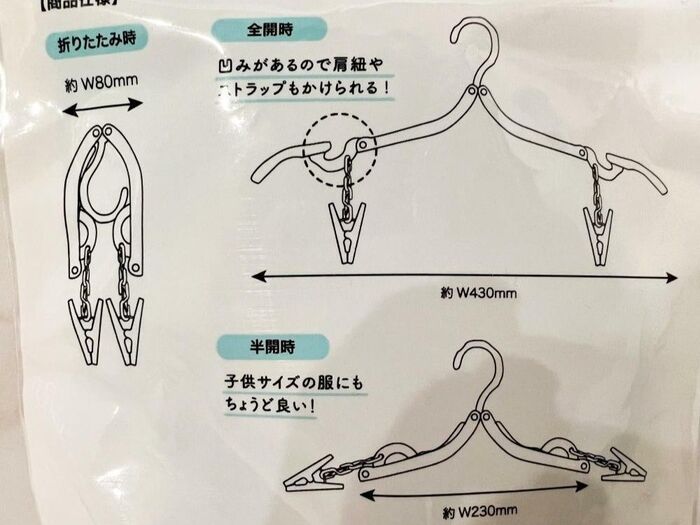 非常にコンパクト。子供用のお洋服やストラップ付きのキャミソールなどはかけやすそうですね。