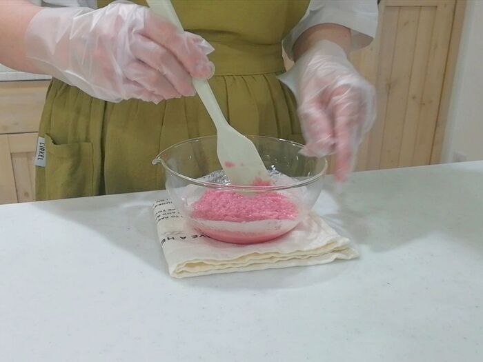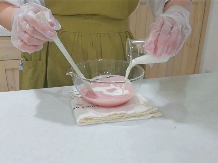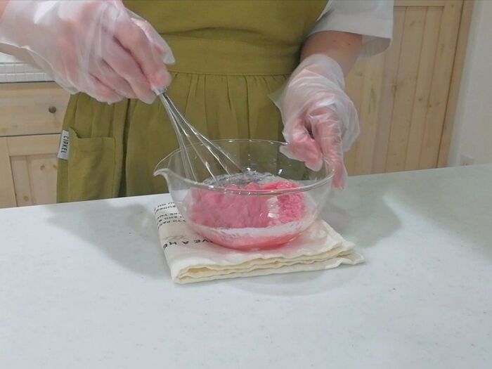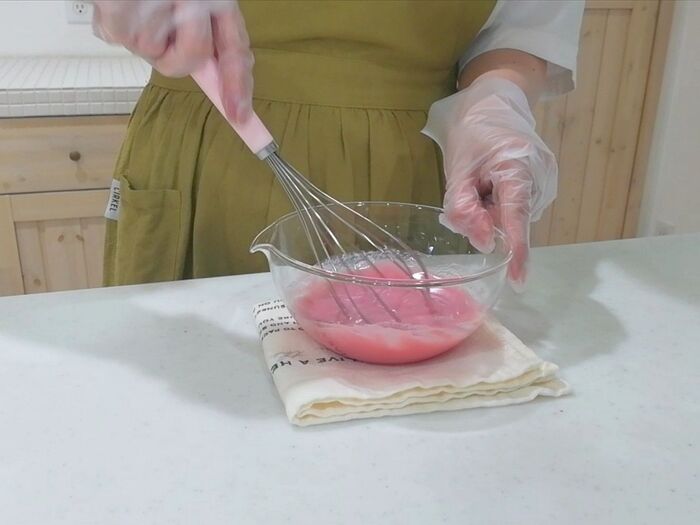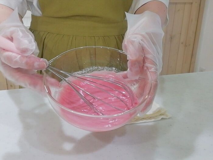 いちごパウダーを加え粉っぽさが無くなるまで混ぜる。