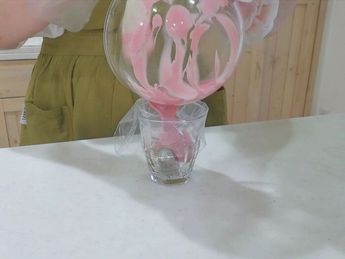 絞りやすい固さになったら星口金をつけた絞り袋に入れる。