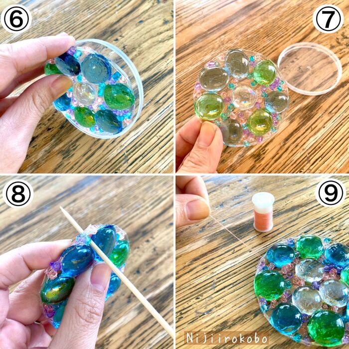★「おはじき/ビーズ」についてですが、おはじきやビーズに限らず透明感のある物であれば何でもOKです。シーグラスや園芸用のガラス玉砂利など、好きな素材を使ってオリジナルな作品をつくってみて下さいね。