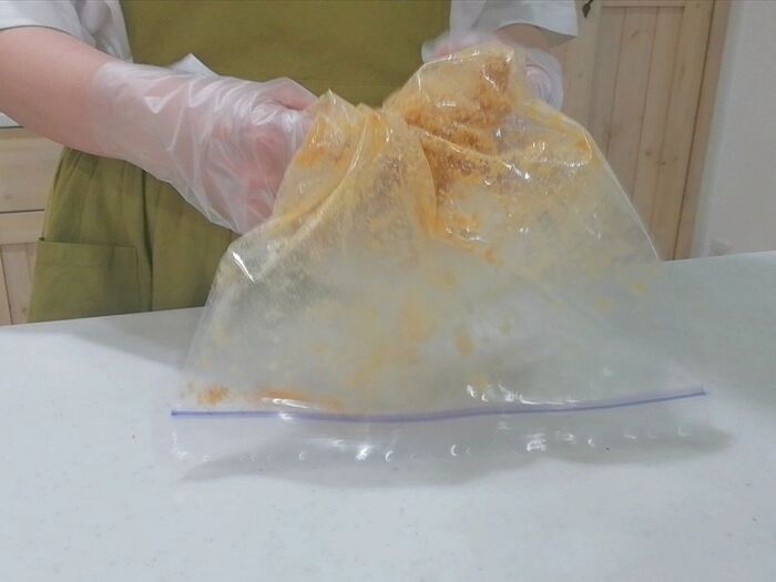 溶かしバターを加え、袋の上から揉んで馴染ませる。