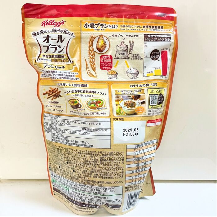主原料の小麦ブランに含まれる発酵性食物繊維が、善玉菌を増やして腸内環境を改善してくれるとのこと。