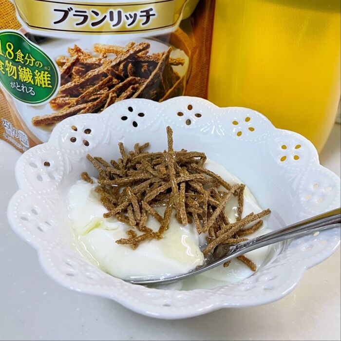 まずは、ヨーグルトにトッピング。単体では甘みはないので、ハチミツも入れました。